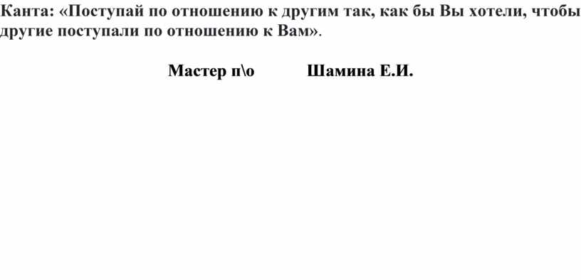 В любой жизненной ситуации ты должен вести себя достойно, справедливо и уважать закон. Именно, правые знания помогут тебе поступить так, чтобы не пришлось сожалеть ни тебе, ни твоим родителям, ни другим окружающим тебя людям. И помни слова немецкого философа И. Канта: «Поступай по отношению к другим так, как бы Вы хотели, чтобы другие поступали по отношению к Вам».