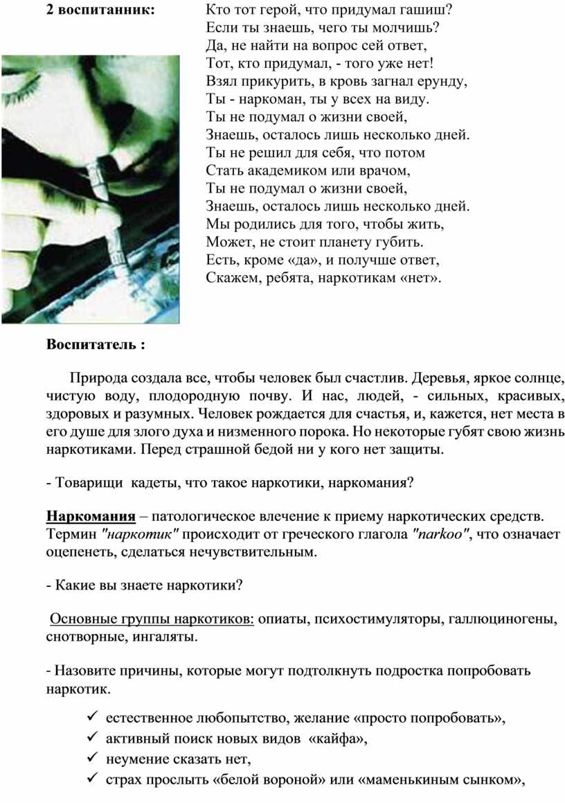 2 воспитанник: Кто тот герой, что придумал гашиш?