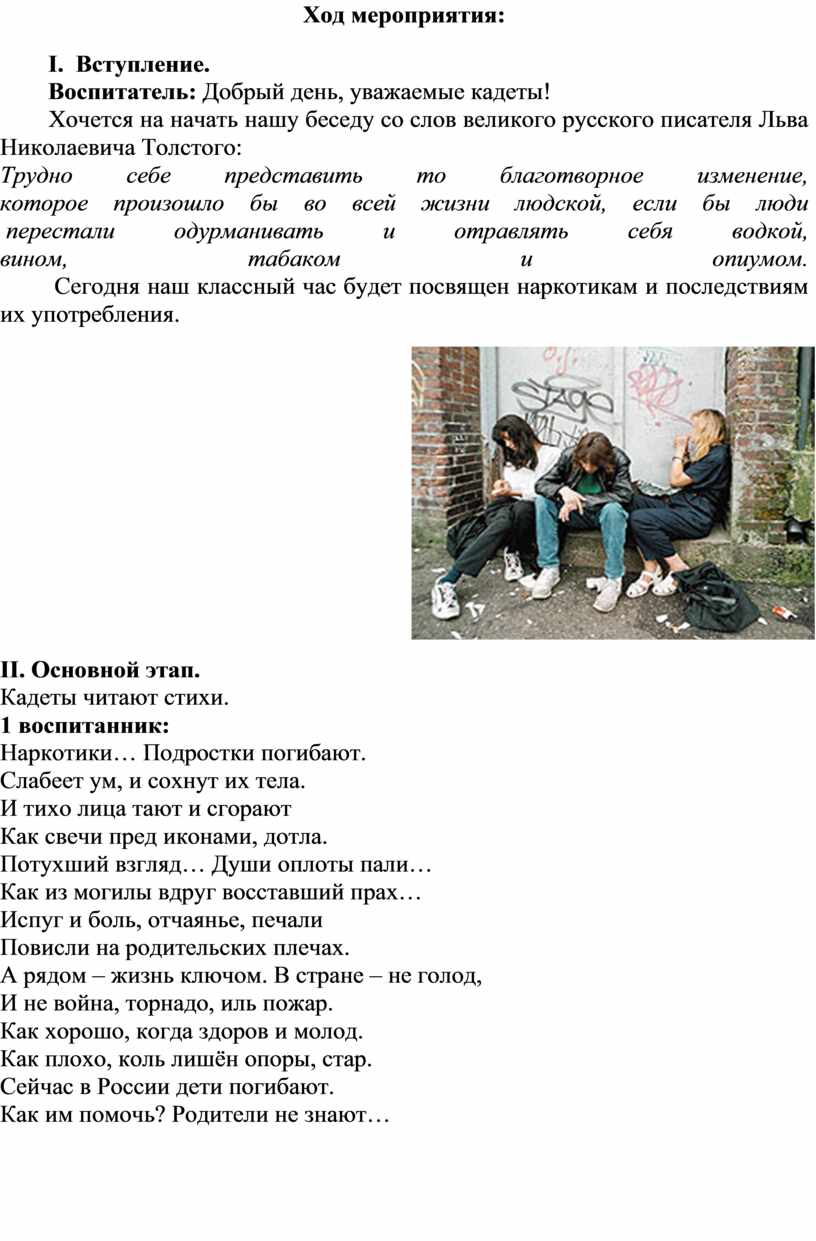 Сегодня наш классный час будет посвящен наркотикам и последствиям