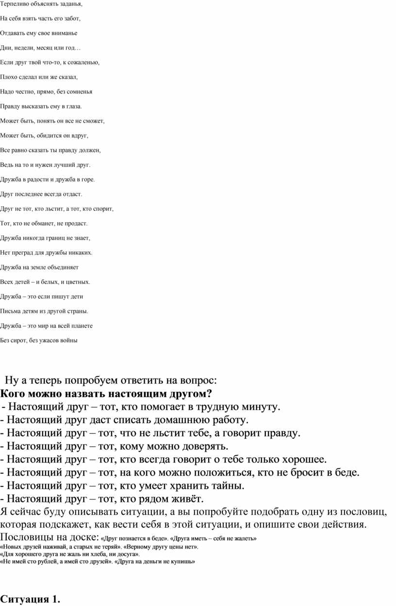 Для того, чтобы определить каким должен быть настоящий друг обсудим предлагающиеся вам ситуации (работа в группах)