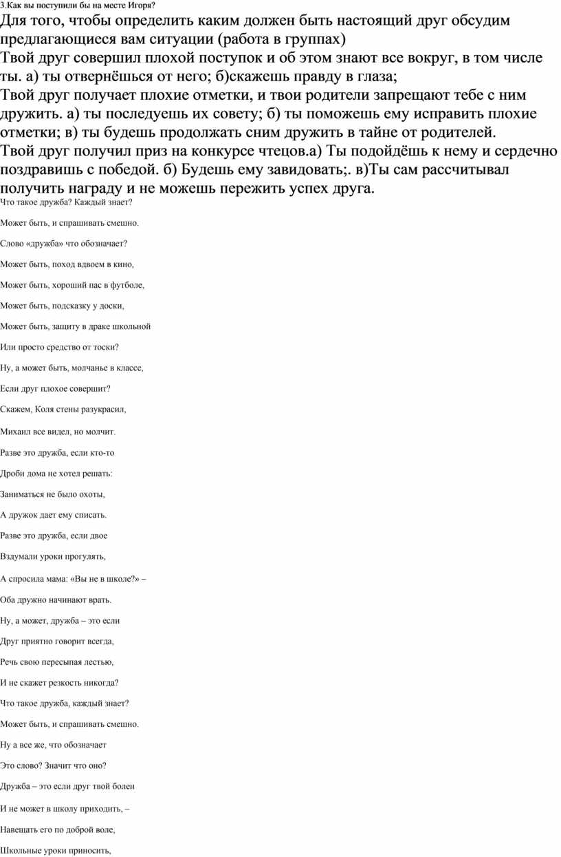 2. Твой друг получает плохие отметки, и твои родители запрещают тебе с ним дружить. а) ты последуешь их совету; б) ты поможешь ему исправить плохие отметки; в) ты будешь продолжать сним дружить в тайне от родителей.