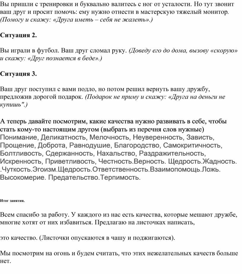 А теперь давайте посмотрим, какие качества нужно развивать в себе, чтобы стать кому-то настоящим другом (выбрать из перечня слов нужные)