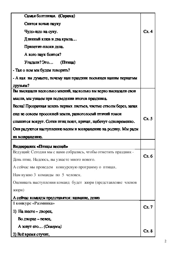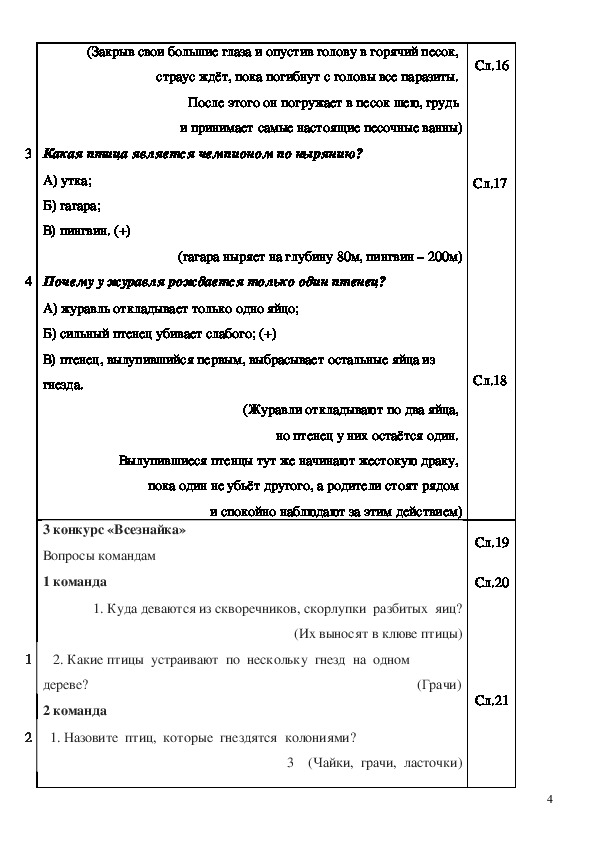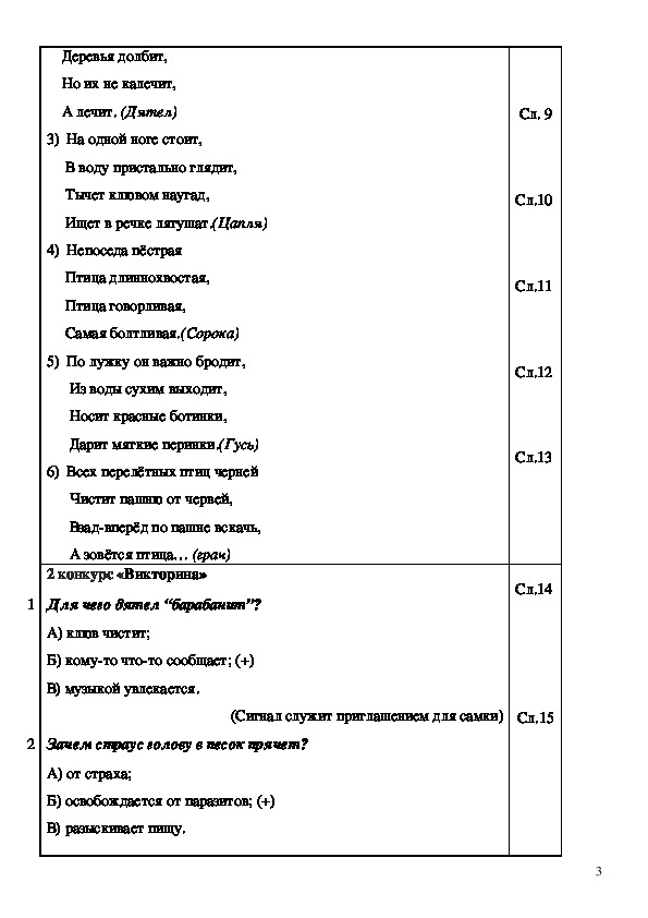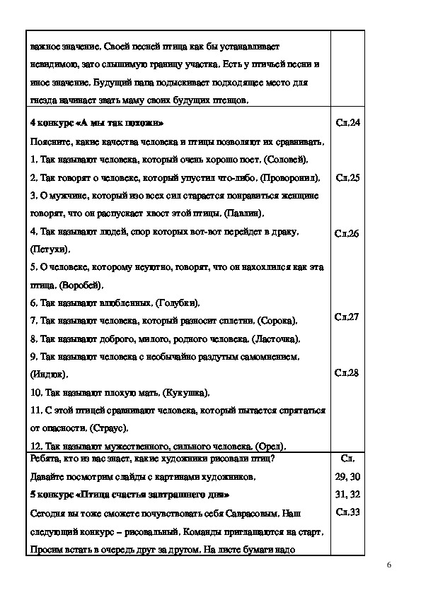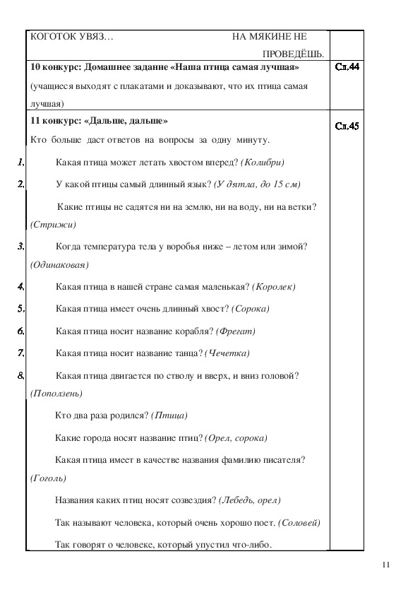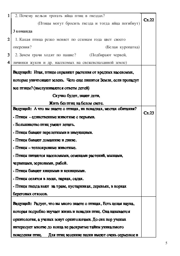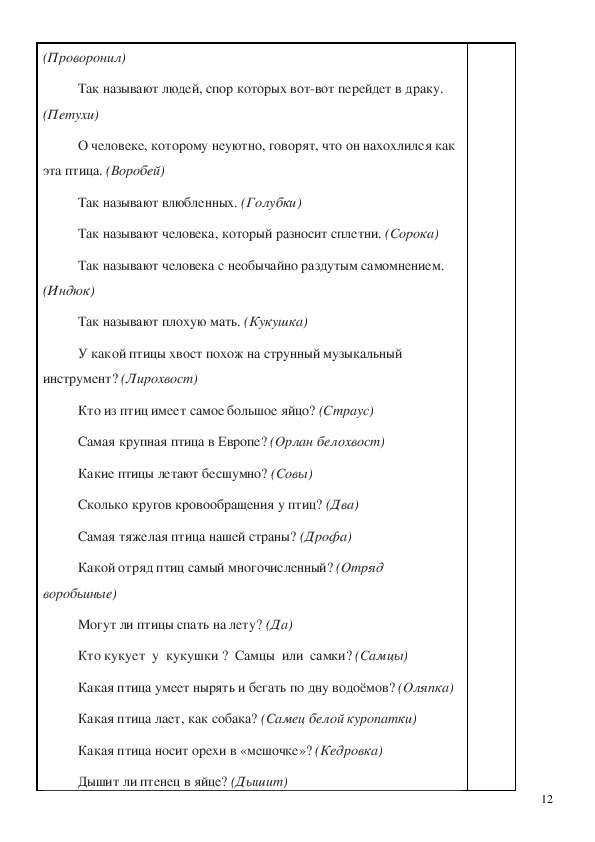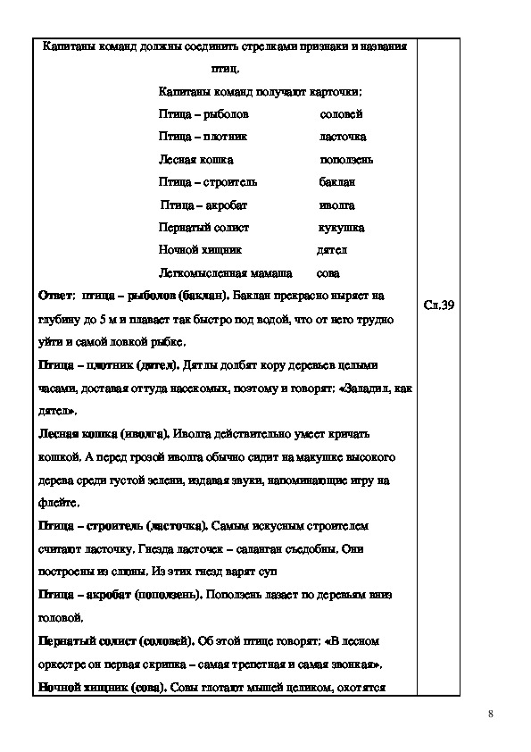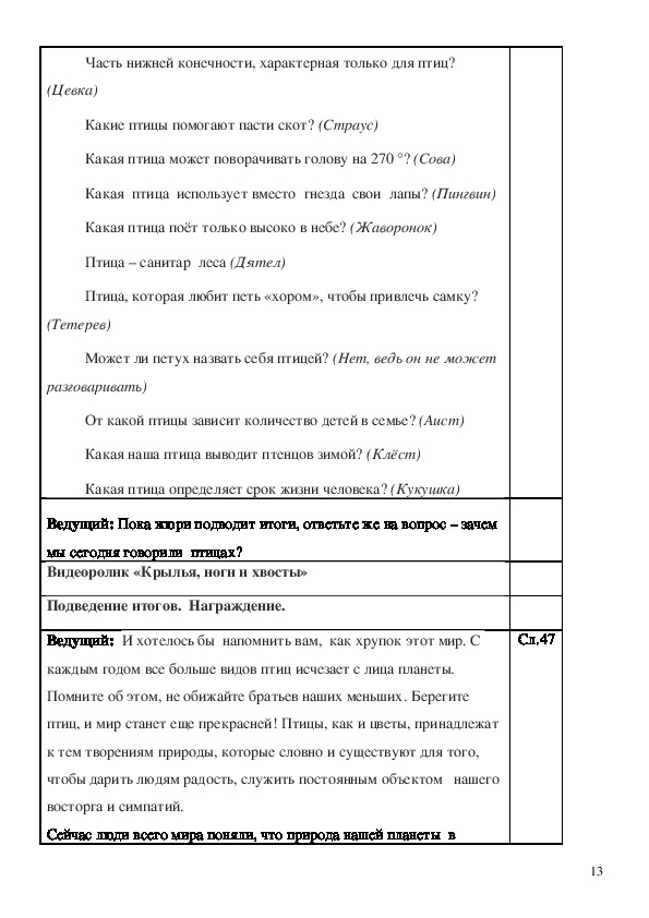 Цель мероприятия: расширение и закрепление знания учащихся о птицах, их