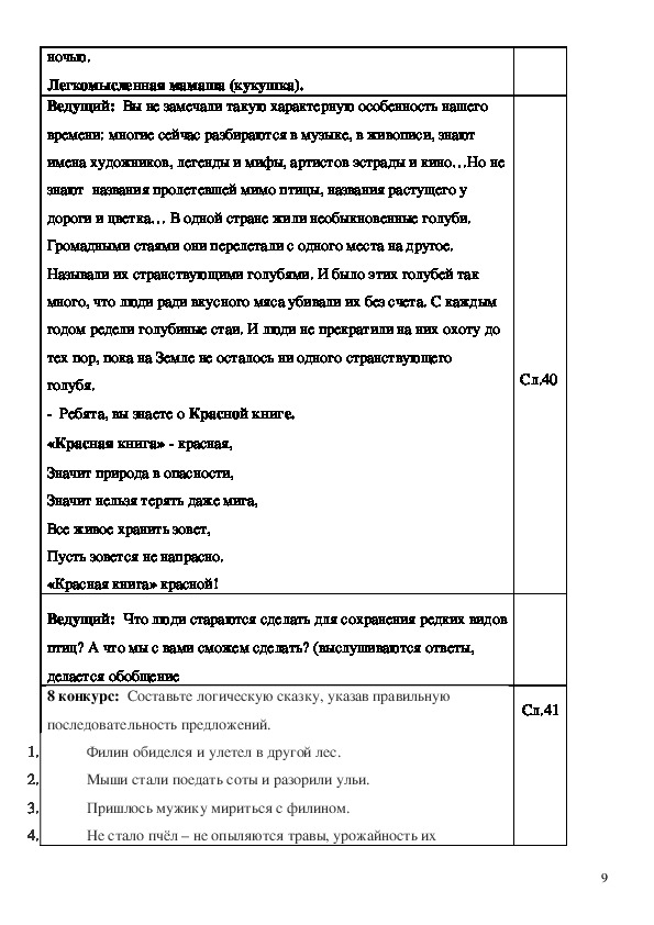 Задачи: развивать интерес, наблюдательность; научить правилам поведения в природе; воспитывать бережное отношение к пернатым друзьям.