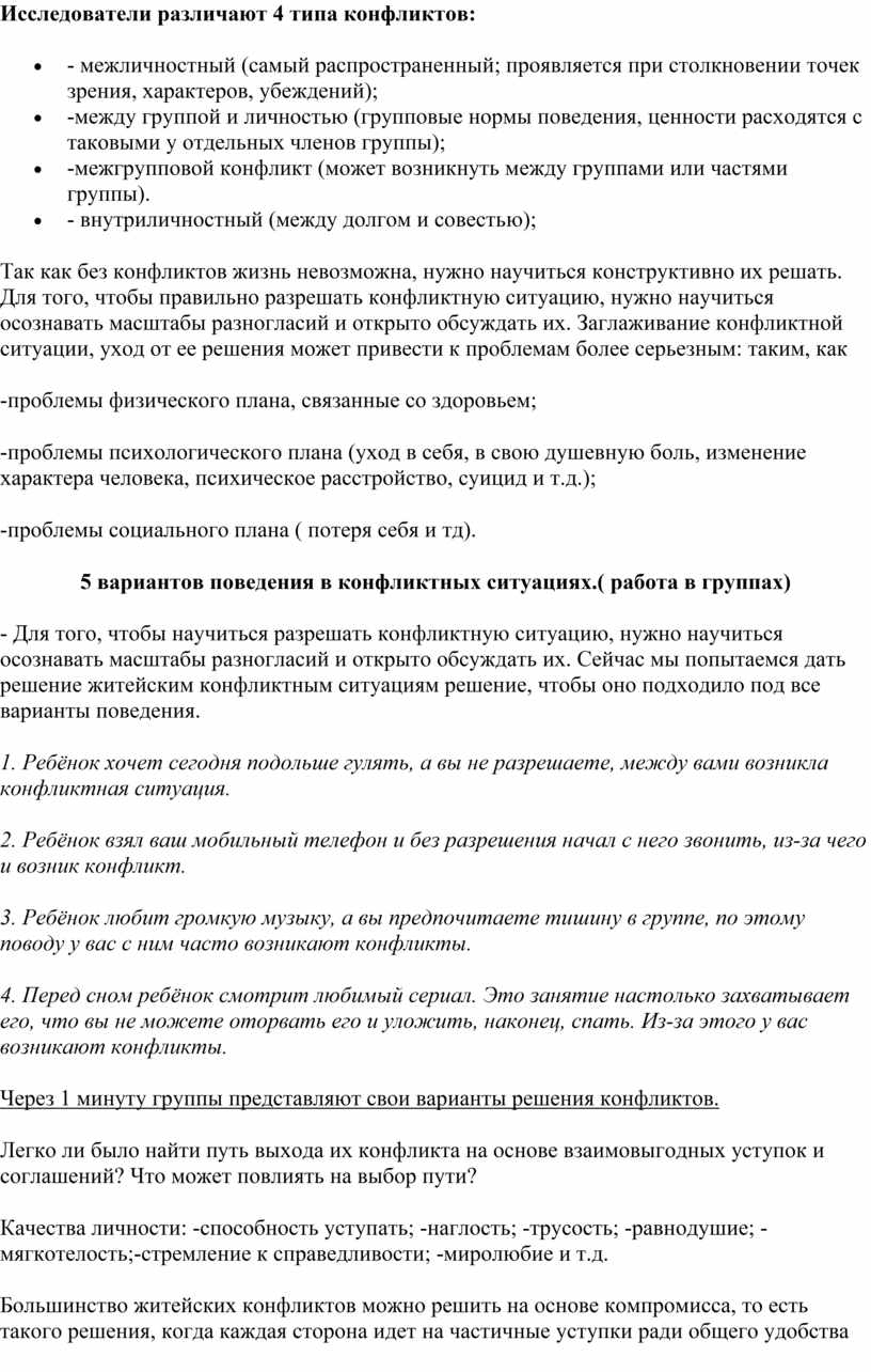 5 вариантов поведения в конфликтных ситуациях.( работа в группах)