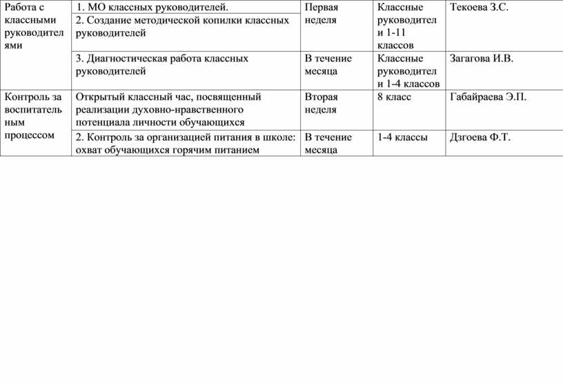 • Совершенствование системы воспитательной работы в классных коллективах;