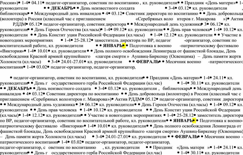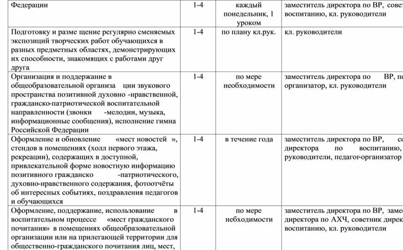 Заместитель по ВР, советник по воспитательной работе, классные руководители, педагог-организатор |