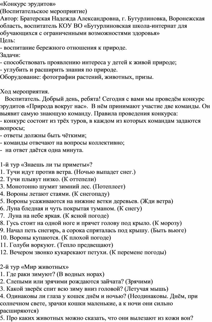 «Конкурс эрудитов»