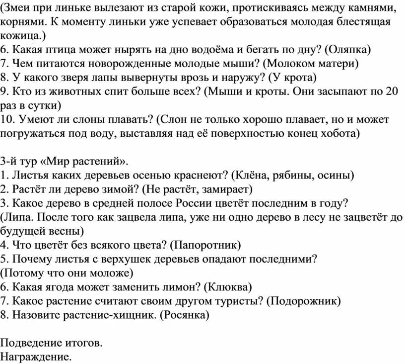 9. Кто из животных спит больше всех? (Мыши и кроты. Они засыпают по 20 раз в сутки)