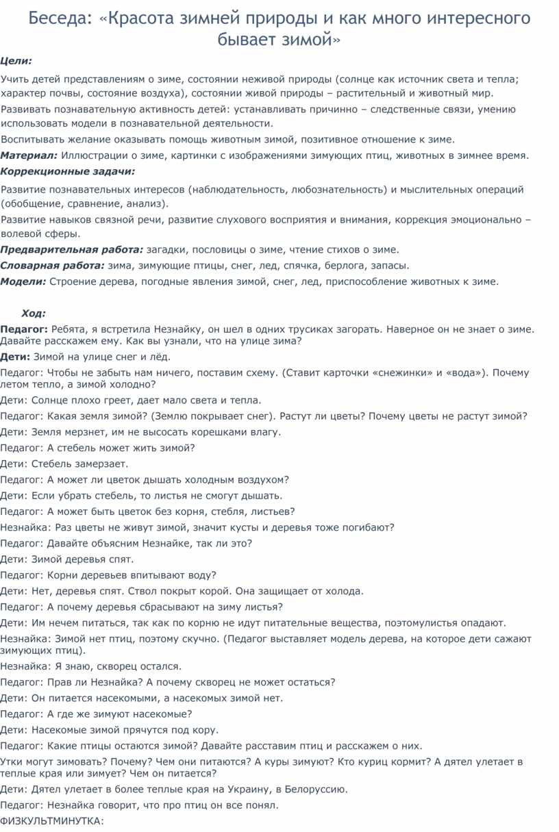 Беседа: «Красота зимней природы и как много интересного бывает зимой»