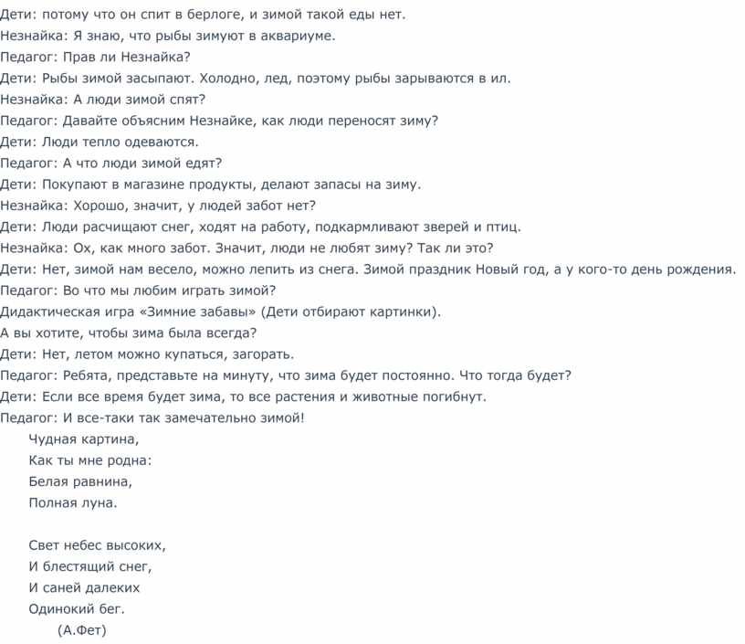 Педагог: Давайте объясним Незнайке, как люди переносят зиму?