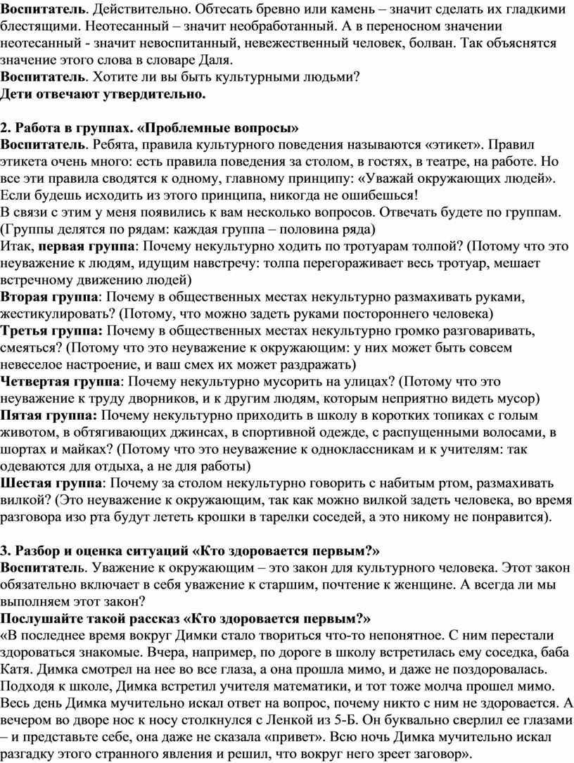 Воспитатель. Как вы считает, людям приятнее общаться с культурным человеком или с диким?