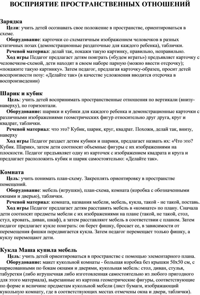 ВОСПРИЯТИЕ ПРОСТРАНСТВЕННЫХ ОТНОШЕНИЙ