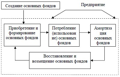 Воспроизводство основных фондов – это непрерывный процесс их об- новления путем приобретения новых, реконструкции, технического перевоору- жения, модернизации и капитального ремонта, включающий следующие взаи- мосвязанные стадии: создание, потребление, амортизация, восстановление и возмещение.