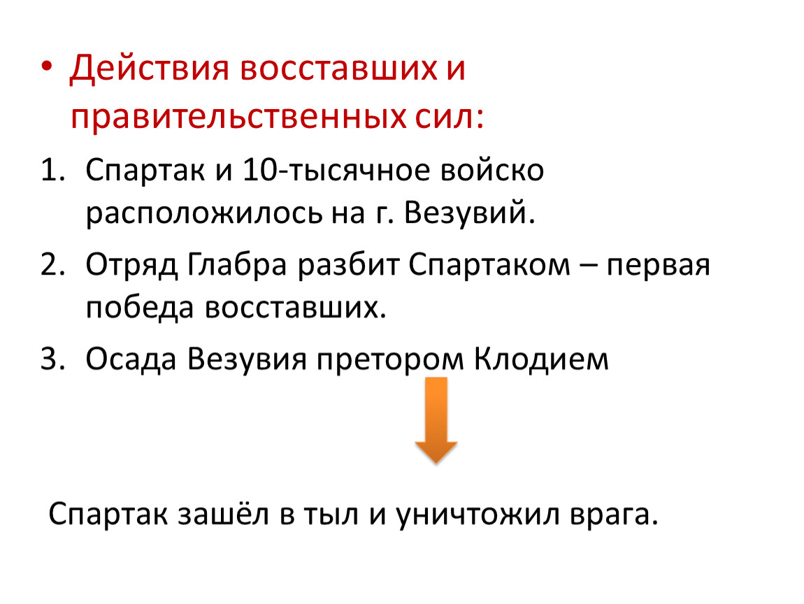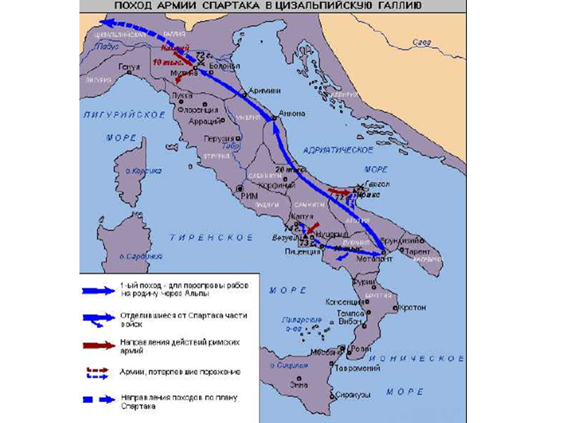 Спартак и 10-тысячное войско расположилось на г. Везувий.