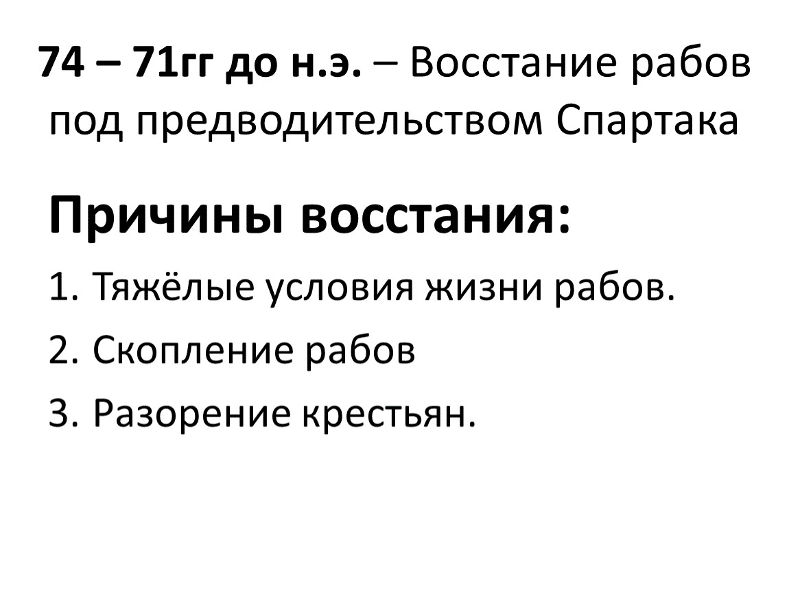 74 – 71гг до н.э. – Восстание рабов под предводительством Спартака