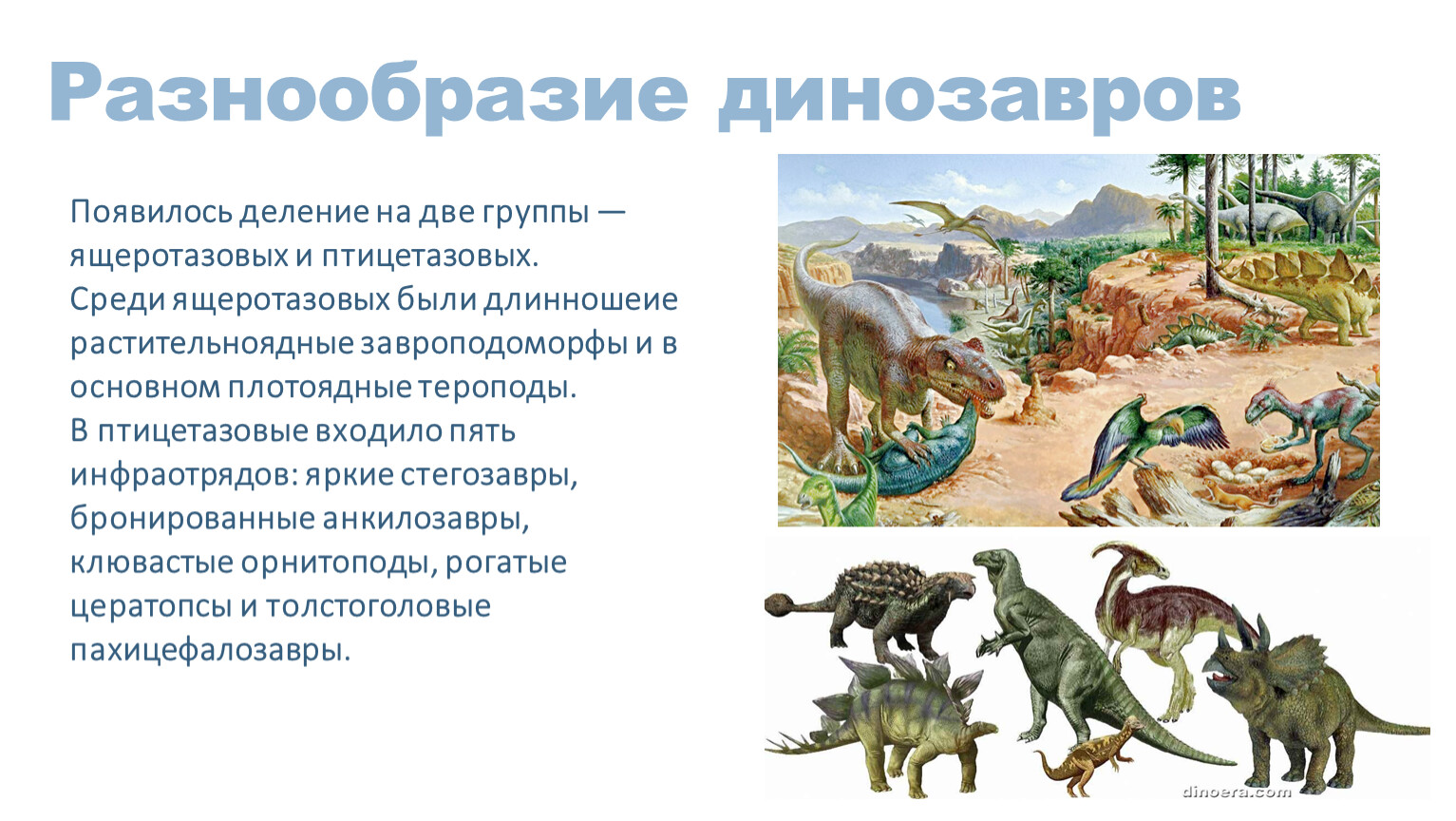 Появилось деление на две группы — ящеротазовых и птицетазовых.