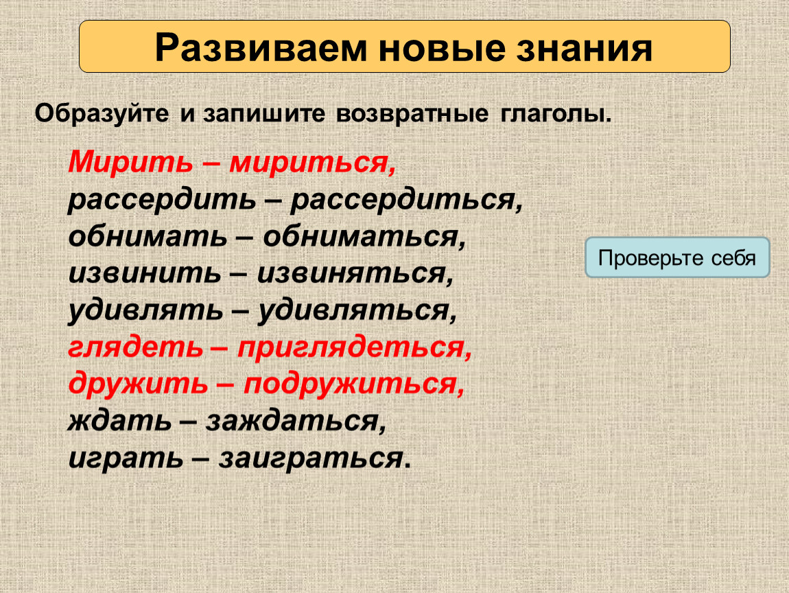 Образуйте и запишите возвратные глаголы.