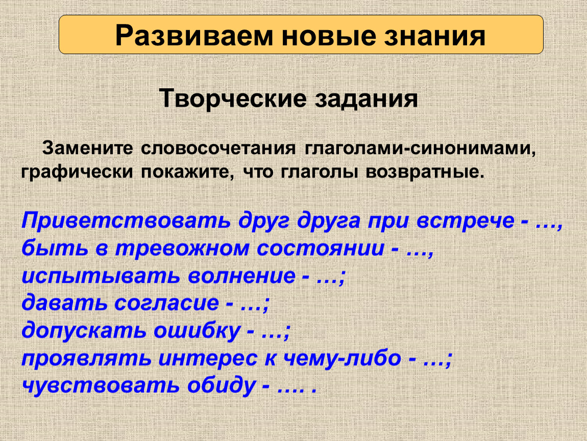 Замените словосочетания глаголами-синонимами, графически покажите, что глаголы возвратные.