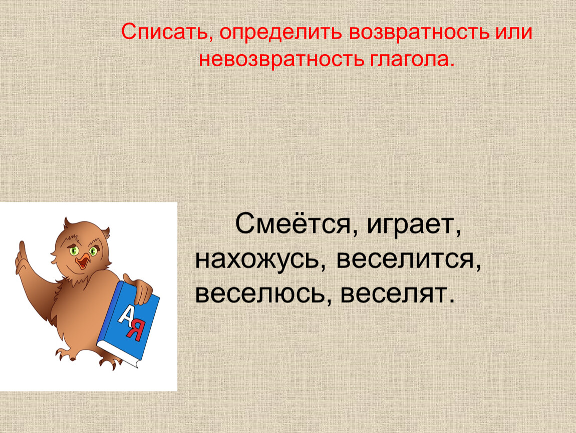 Списать, определить возвратность или невозвратность глагола.