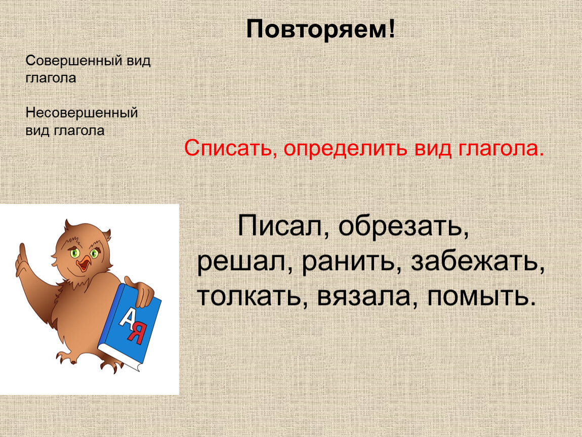 Списать, определить вид глагола.