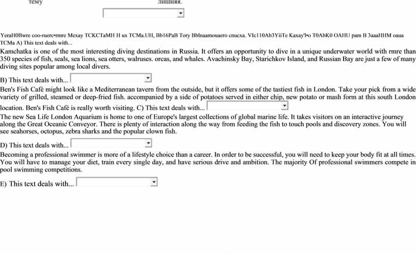 YeraH0Bwre coo-ruerc•rmre Mexay TCKCTaMH H ux TCMa.UH, Bb16PaB Tory Bblnaamouaero cnucxa. VIc110Ab3YiiTe Kaxay'l•o T0AbK0 OAHU pam B 3aaaHHM oaua TCMa A) This text deals with...