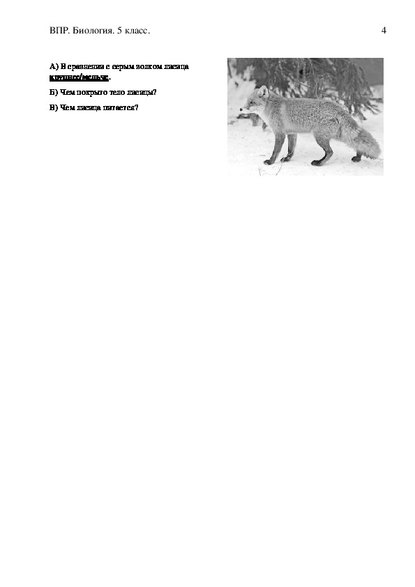 В) Чем лисица питается?Содержание верного ответа и указания по оцениванию