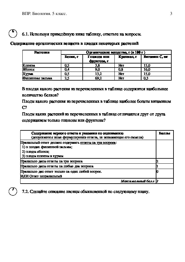7.2. Сделайте описание лисицы обыкновенной по следующему плану.ВПР. Биология. 5 класс.