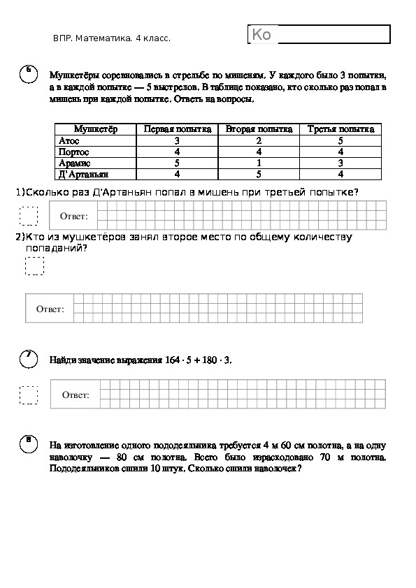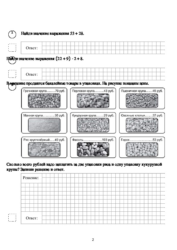 При необходимости можно пользоваться черновиком. Записи в черновике проверяться и оцениваться не будут.ВПР по математике 2018 г. 4 класс Вариант 3
