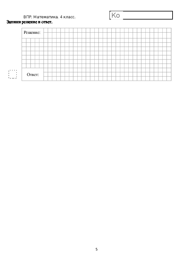 При выполнении работы нельзя пользоваться учебниками, рабочими тетрадями, справочниками, калькулятором.ВПР по математике 2018 г. 4 класс Вариант 5