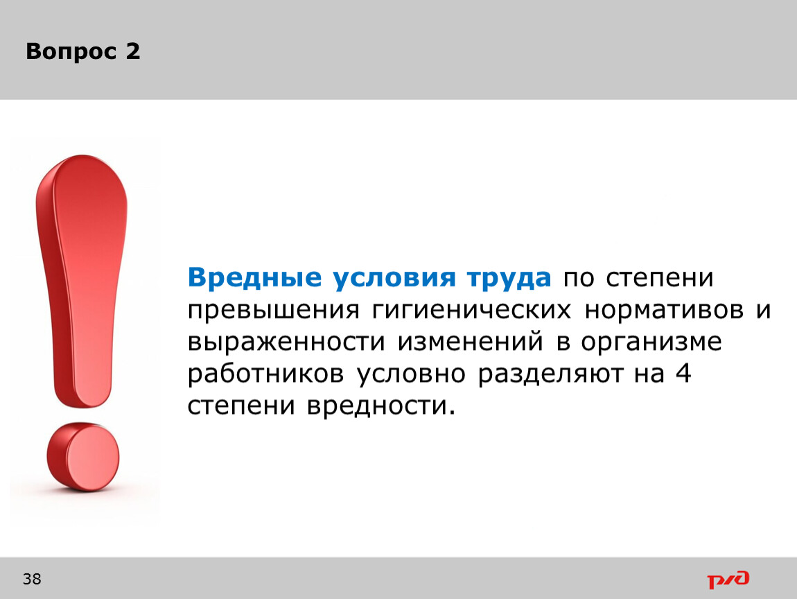 Вредные условия труда по степени превышения гигиенических нормативов и выраженности изменений в организме работников условно разделяют на 4 степени вредности.