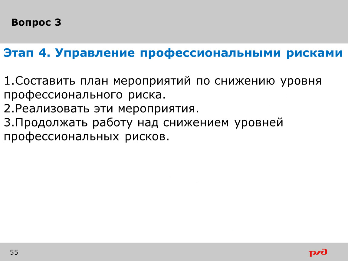 Какие мероприятия включает 3 этап оценки уровня профессиональных рисков?