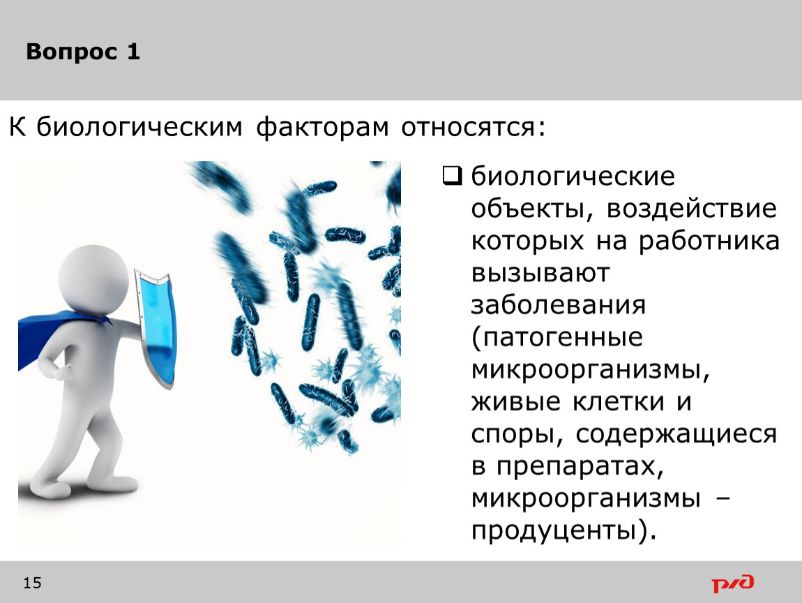 биологические объекты, воздействие которых на работника вызывают заболевания (патогенные микроорганизмы, живые клетки и споры, содержащиеся в препаратах, микроорганизмы – продуценты).