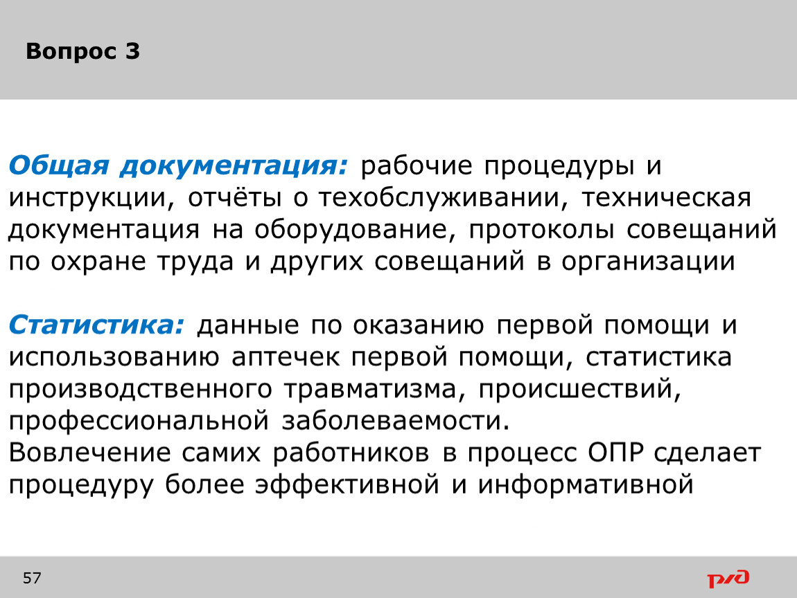 Результаты прошлых процедур: СОУТ, производственный контроль (в том числе КСОТ-П), прошлые ОПР, материалы расследования произошедших несчастных случаев и профзаболеваний