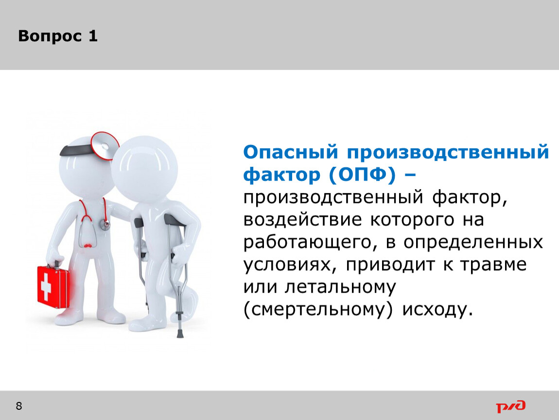 Опасный производственный фактор (ОПФ) – производственный фактор, воздействие которого на работающего, в определенных условиях, приводит к травме или летальному (смертельному) исходу.