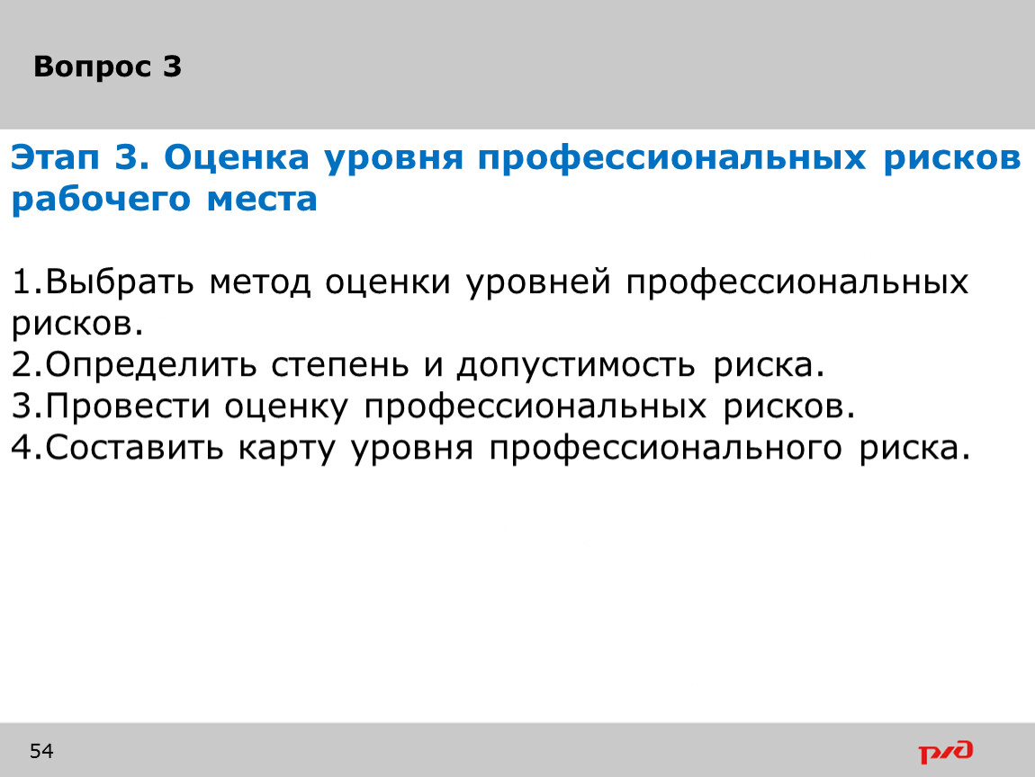 Этап 3. Оценка уровня профессиональных рисков рабочего места