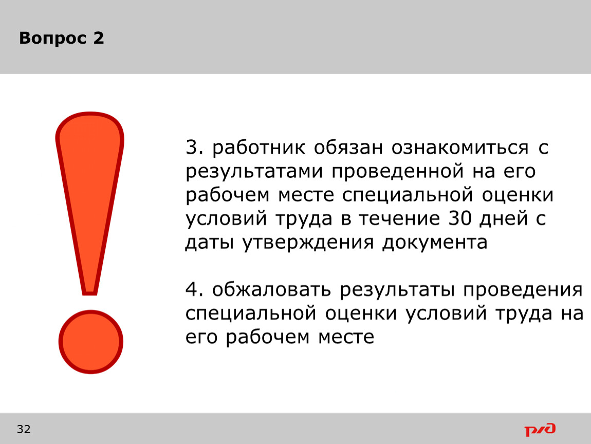 3. работник обязан ознакомиться с результатами проведенной на его рабочем месте специальной оценки условий труда в течение 30 дней с даты утверждения документа