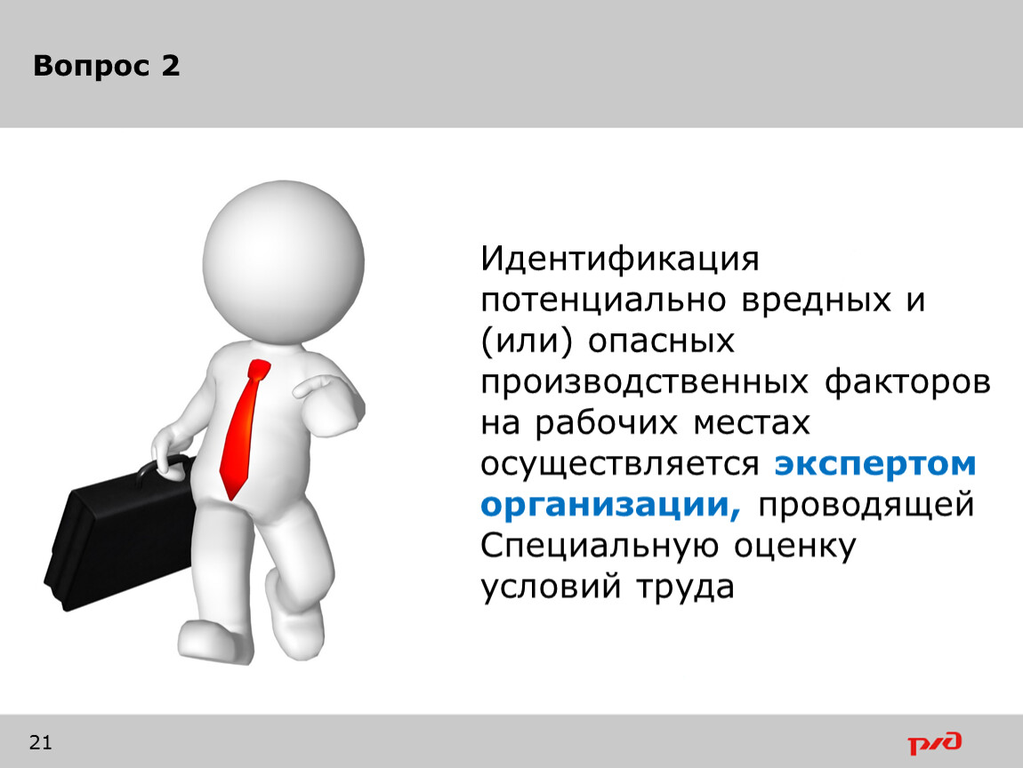 Идентификация потенциально вредных и (или) опасных производственных факторов на рабочих местах осуществляется экспертом организации, проводящей Специальную оценку условий труда