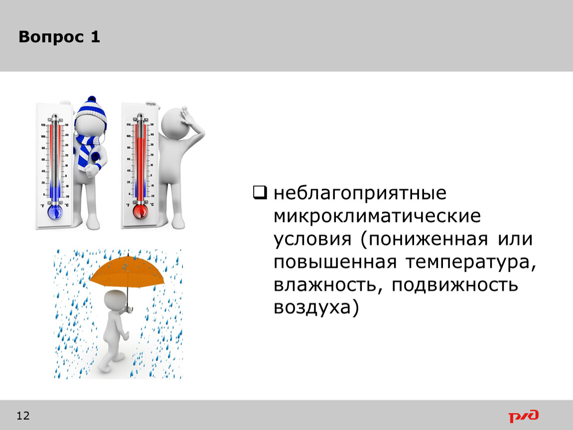 неблагоприятные микроклиматические условия (пониженная или повышенная температура, влажность, подвижность воздуха)
