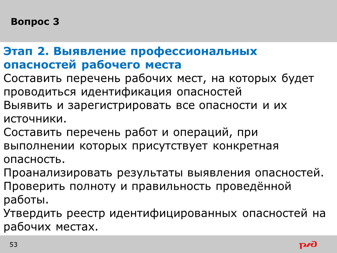 Этап 2. Выявление профессиональных опасностей рабочего места