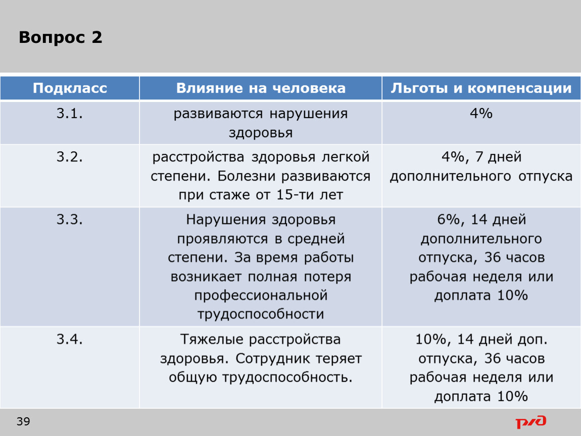 Подкласс | Влияние на человека | Льготы и компенсации |