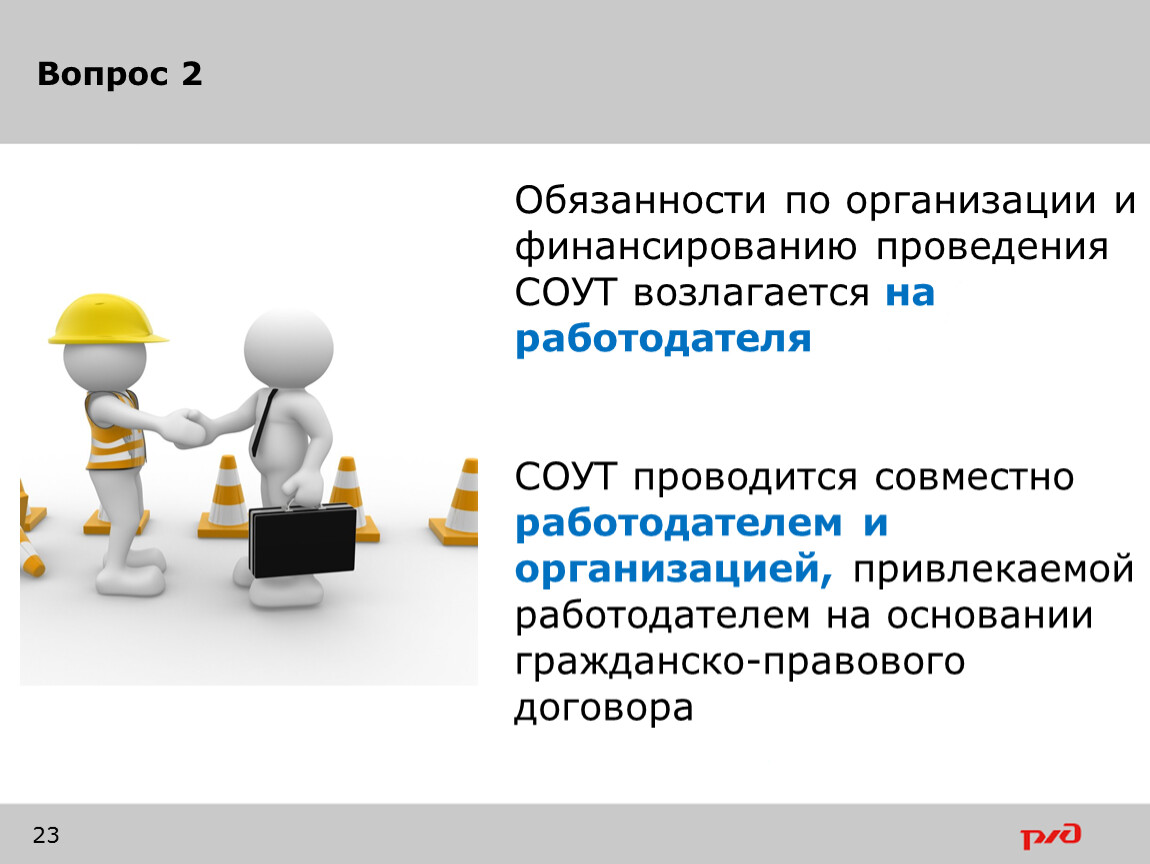 СОУТ проводится совместно работодателем и организацией, привлекаемой работодателем на основании гражданско-правового договора