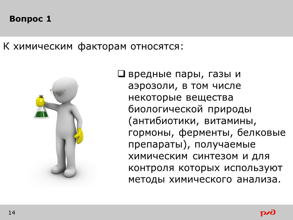 вредные пары, газы и аэрозоли, в том числе некоторые вещества биологической природы (антибиотики, витамины, гормоны, ферменты, белковые препараты), получаемые химическим синтезом и для контроля которых используют методы химического анализа.