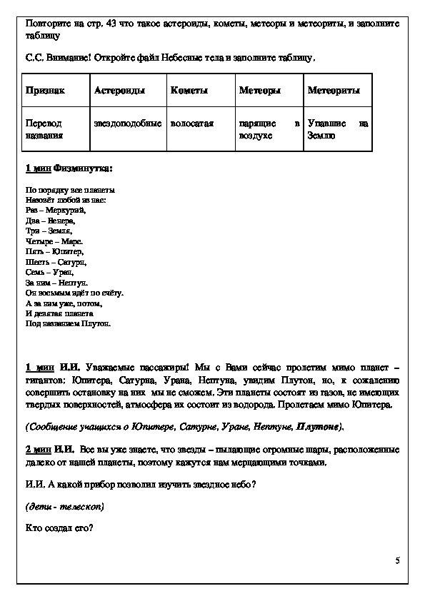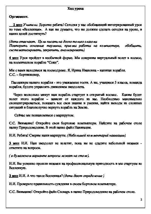 4 мин Урок пройдет в необычной форме. Мы совершим виртуальный полет в космос,