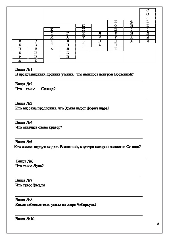 Солнца. Ответы занесите в рабочая тетрадь столбиком.