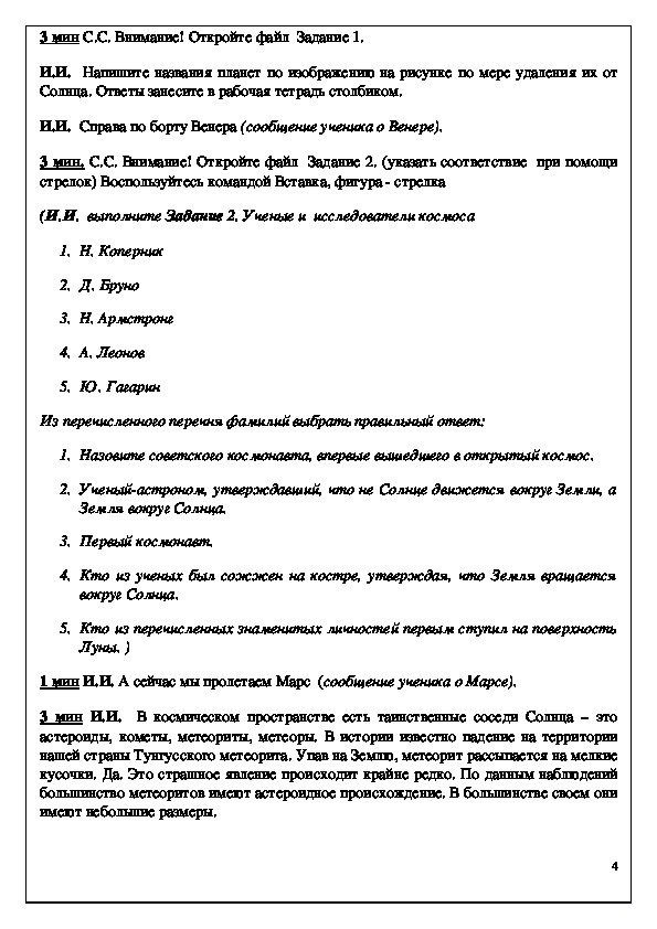 3 мин И.И. Таким образом, мы завершили наш полет в космическое пространство,