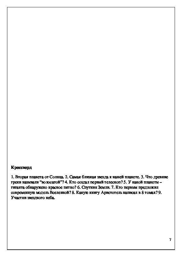 1. Вторая планета от Солнца. 2. Самая близкая звезда к нашей планете. 3. Что древние