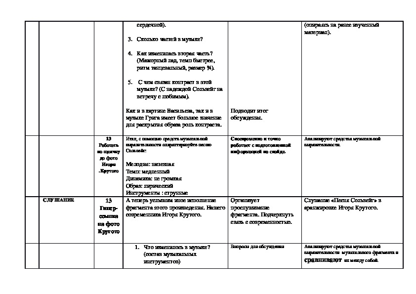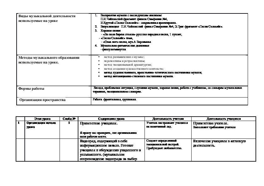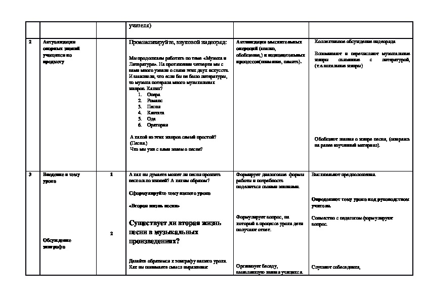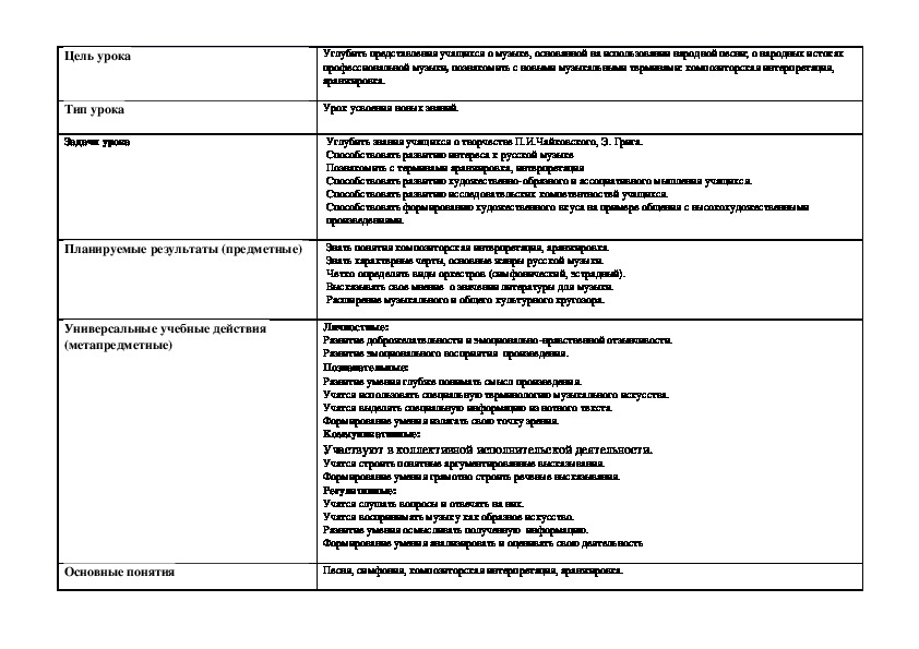 ТЕХНОЛОГИЧЕСКАЯ КАРТА УРОКА МУЗЫКИ В 5 КЛАССЕ