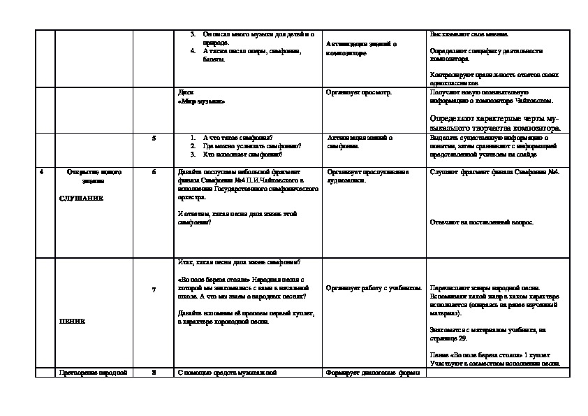 Беседа, проблемная ситуация, слушание музыки, хоровое пение, работа с учебником, со словарем музыкальных