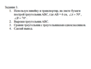 линейку и транспортир, на листе бумаги построй треугольник АВС, где АВ = 6